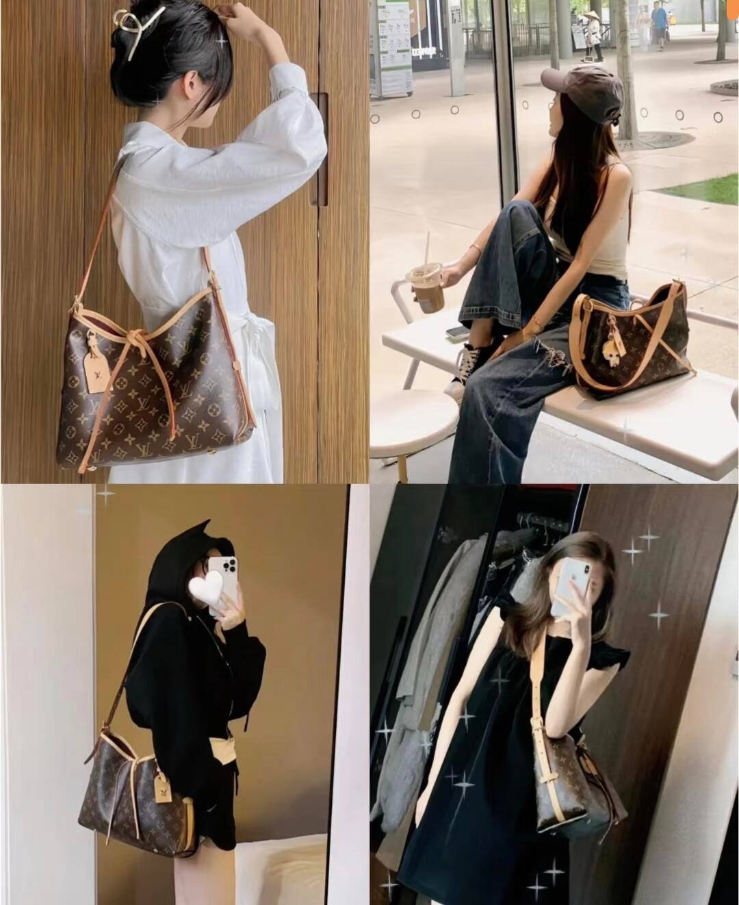 这个尺寸其实劝退了很多姐妹,我167 其实不穿高跟鞋有点压个子的。但是这个包真的轻轻松松背出欧洲街头的自然 随意 慵懒感!大包要的就是这种凹凹凸凸的随意感!如果你觉得小号太普通,中规中矩,那么可以冲中号!容量就不说了,这个大小显而易见,随便塞!羽绒服都可以塞进去哈哈哈哈~但有一说一,因为carryall的皮质整体偏软,中号相较于小号,会比较容易踏,有强迫症的姐妹,不背的时候,尽量把包平躺,或者塞点东西。